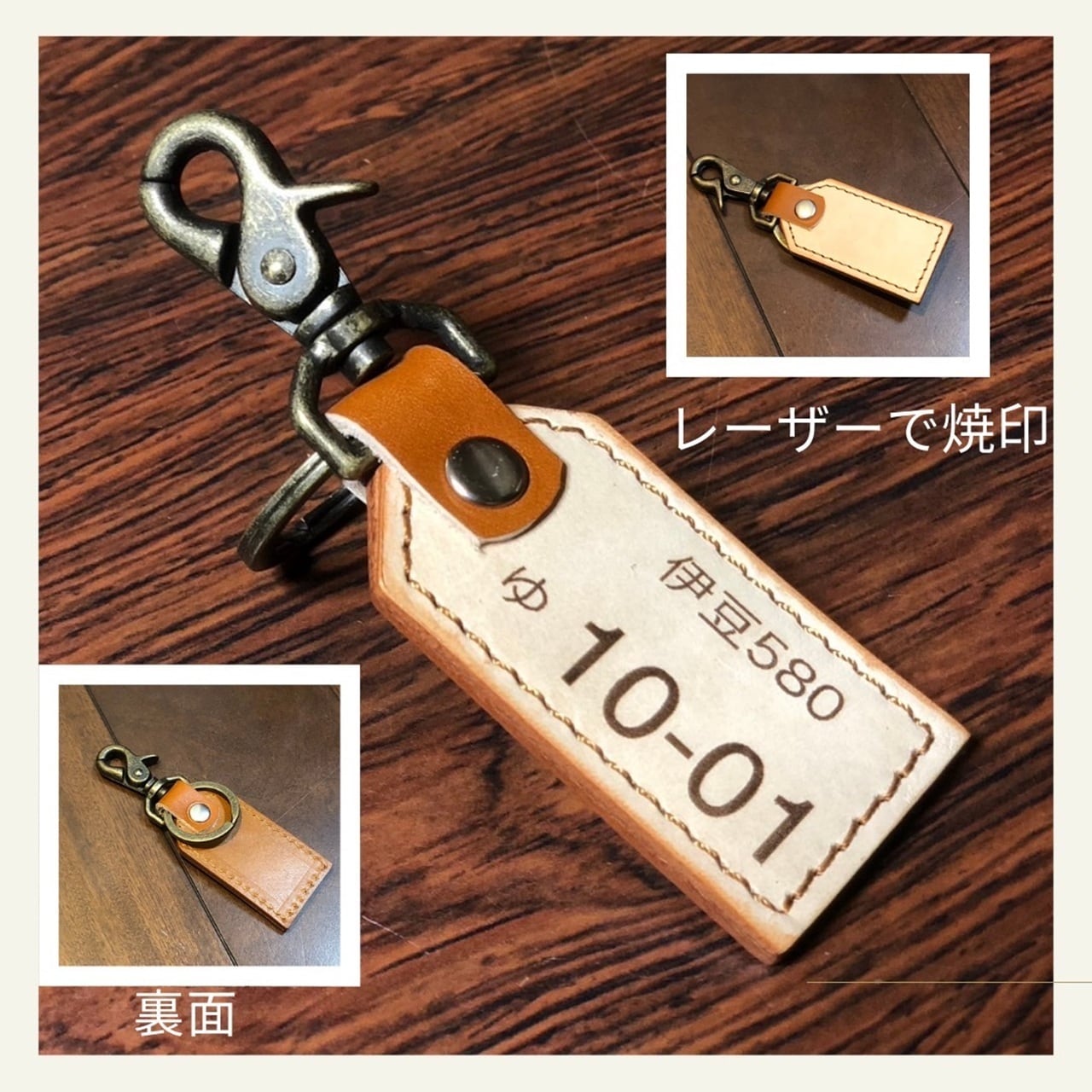 革のナンバープレートキーホルダー|お好きな番号焼印します|名入れ込みの価格