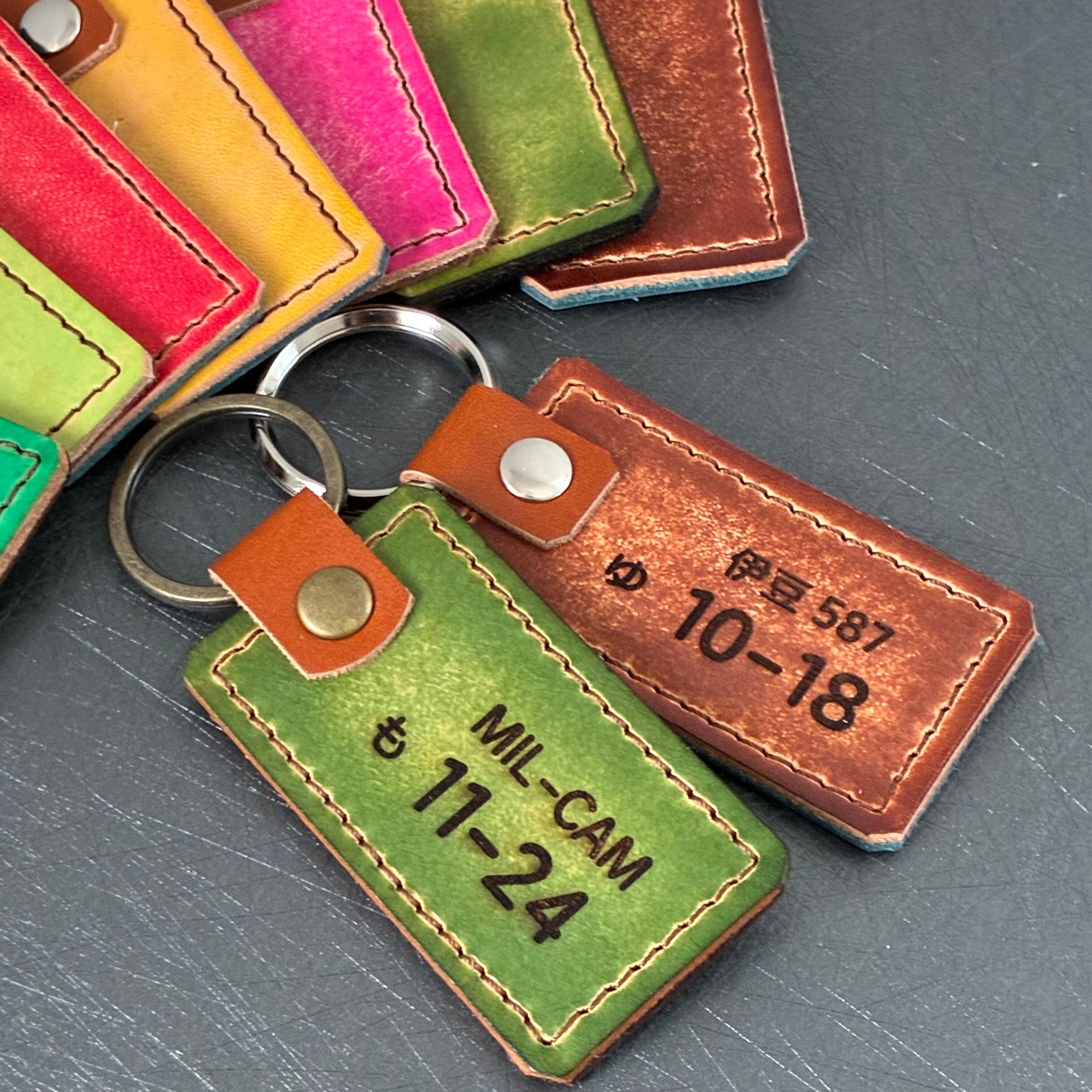 ナンバープレートキーホルダー|本革を手染めした一点モノ|お好きなナンバーお入れします