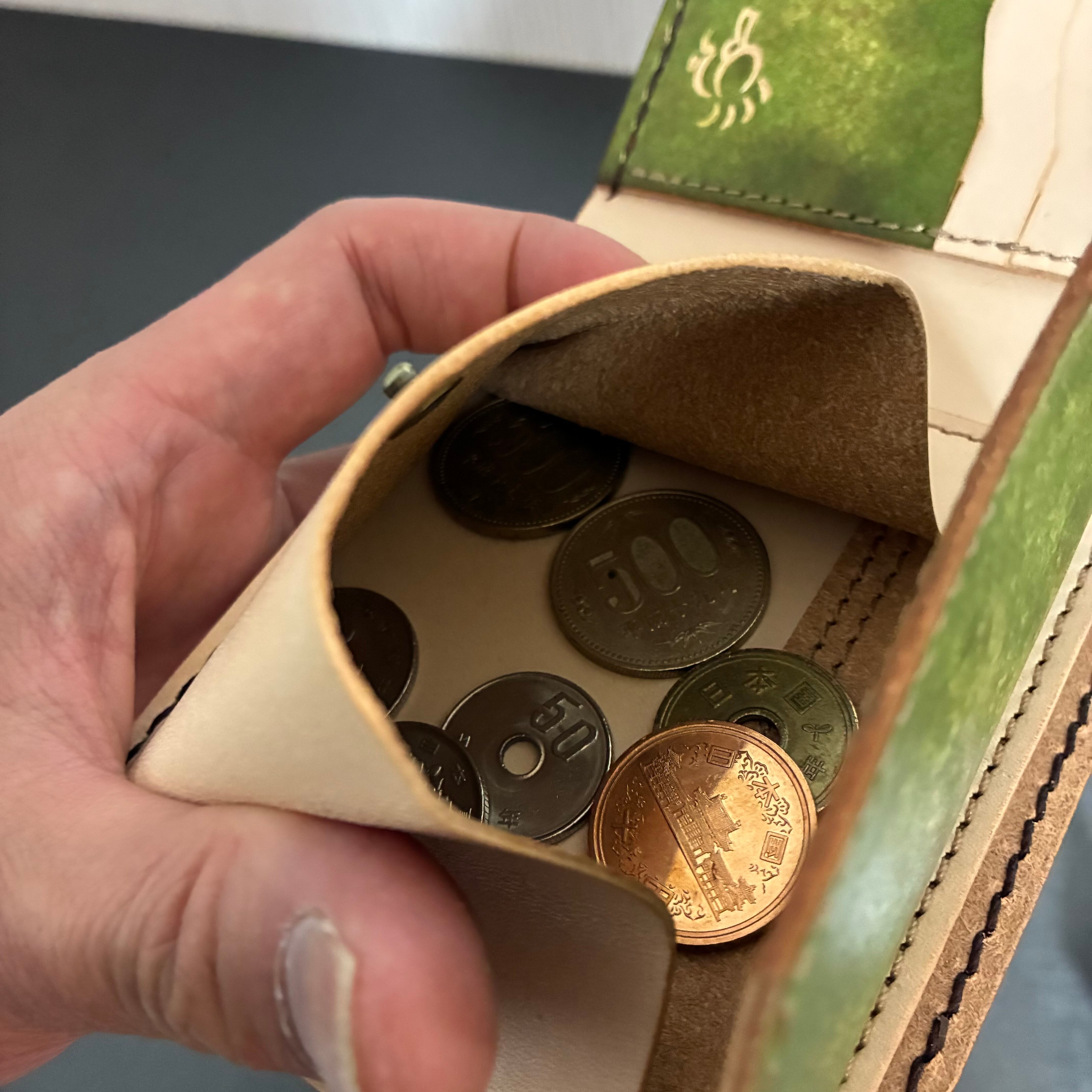 少し大きめに作製してありますので、小銭やカード、お札も出しやすいです。